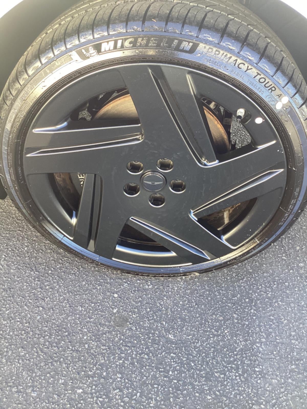- Wheels: 21" x 8.5J Fr & 21" x 9.5J Rr Matte Black -inc: Machined finish alloy, black floating center caps